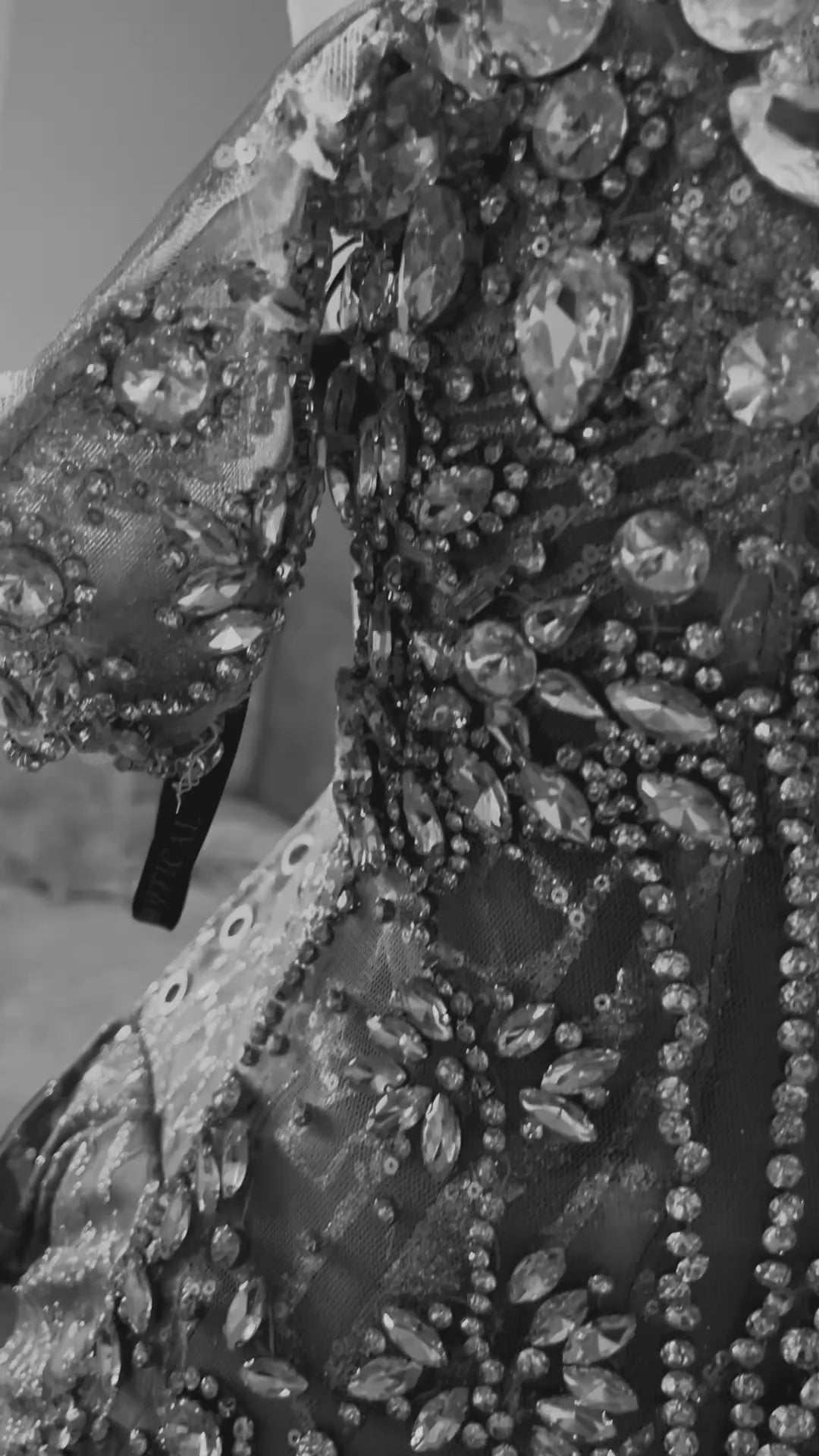 Our Signature Corset Gowns blend structure, elegance with rhinestone detailing. Each gown is crafted to accentuate your shape.